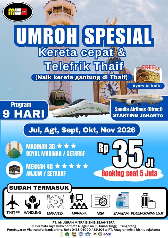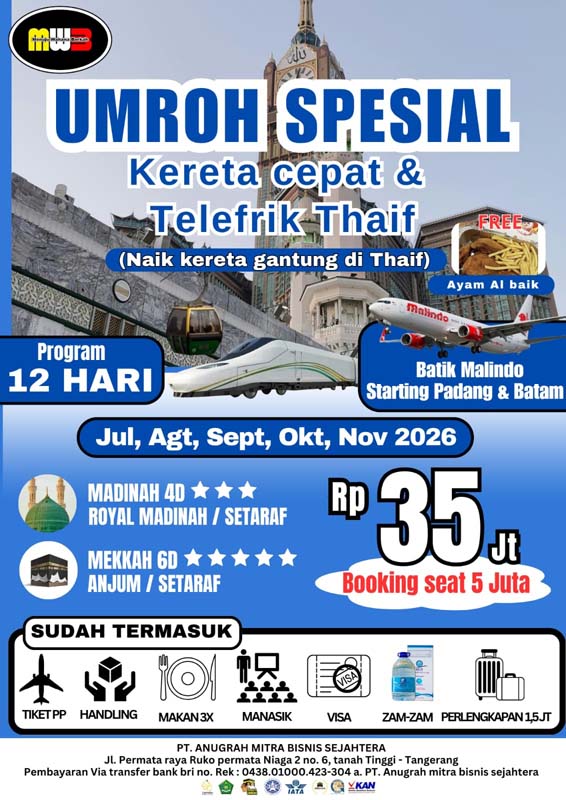 Untuk pembayaran Paket Umroh & Haji tanpa antri dapat dilakukan melalui transfer ke rekening :
